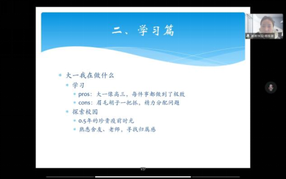 本次分享会何佳妮共从以下五个部分展开:个人简介、学习篇、生活篇、感受分享以及答疑解惑环节。