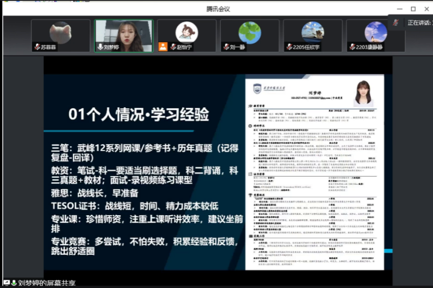 分享会最后是答疑解惑环节,同学们纷纷提出了自己的问题,如面试问题、推免准备、如何练习口语等,刘梦婷对所有的问题都进行了细心的解答,并推荐了相关学习资料。