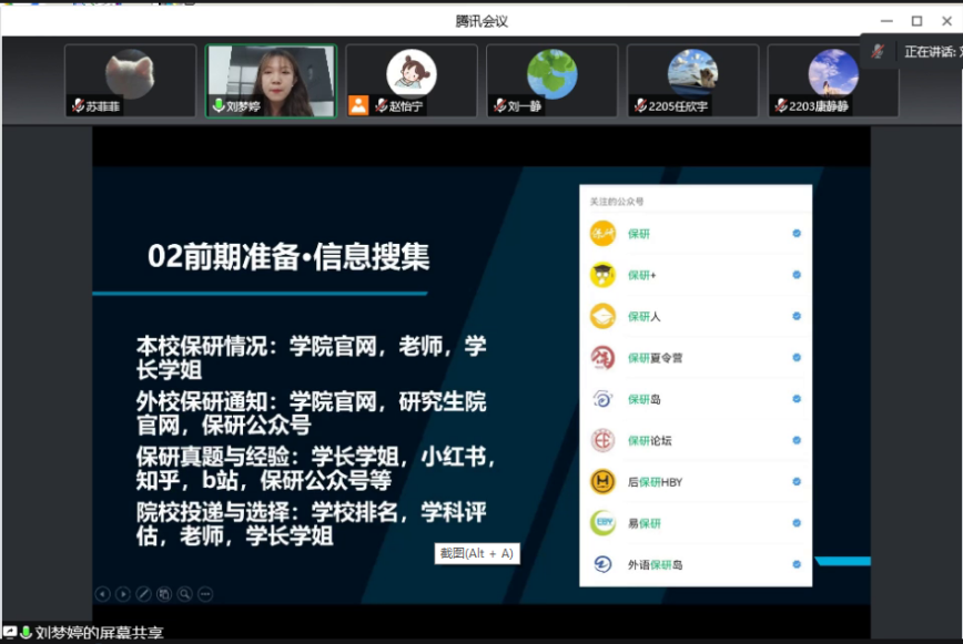第二部分是推免的前期准备,刘梦婷分别从信息搜集、准备文书、考核准备以及翻译技能四个方面为大家细致介绍了在推免前期需要做的准备,同学们可以提前了解并做好规划。