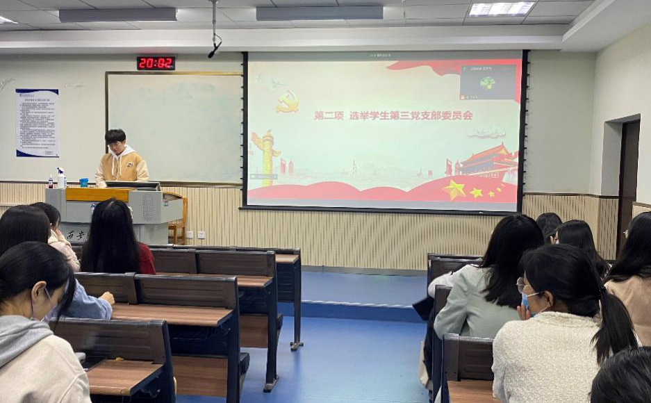 学生第三党支部在JA410组织召开支部换届选举大会,本次会议由王宇飞同志主持,学生第三党支部全体党员参加。