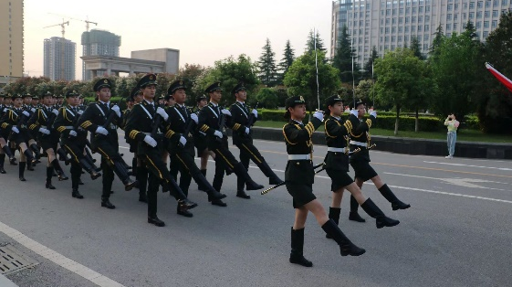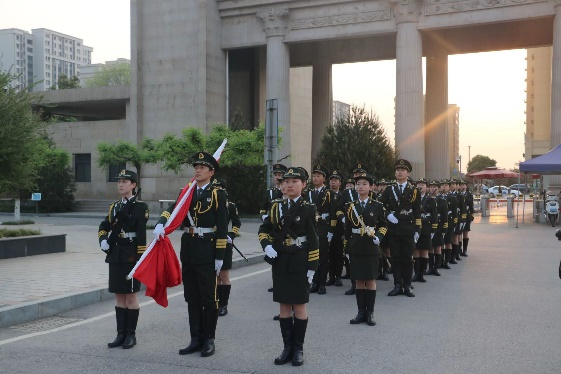 旭日东升,春意盎然。在一片安静而又严肃有序的氛围中,西安外国语大学国旗护卫队进行出旗仪式,伴随着响亮的号令及律动的音乐,国旗护卫队的成员们昂首挺胸,步伐稳健、队列整齐地护送国旗到国旗台下,他们每个人都神色庄重,不由让人心生敬佩。随着国歌响起,全体在场人员共同高唱国歌,视线注视着国旗缓缓而升一直到国旗高飘,国歌声结束。大家的眼神中充满着自豪感与敬畏感。