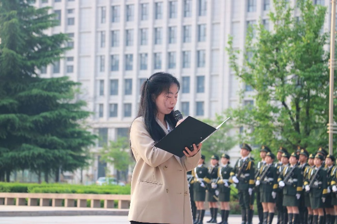 紧接着,英师2001班牛小颖同学作了国旗下演讲,强调了青年人在新时代应当如何书写无悔青春,如何将个人理想融入国家发展历程,如何用实际行动践行“请党放心,强国有我”的誓言,激励我们青年大学生要在新时代踔厉奋发,不负韶华,不负人民。
