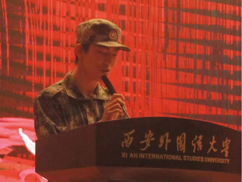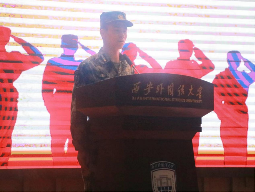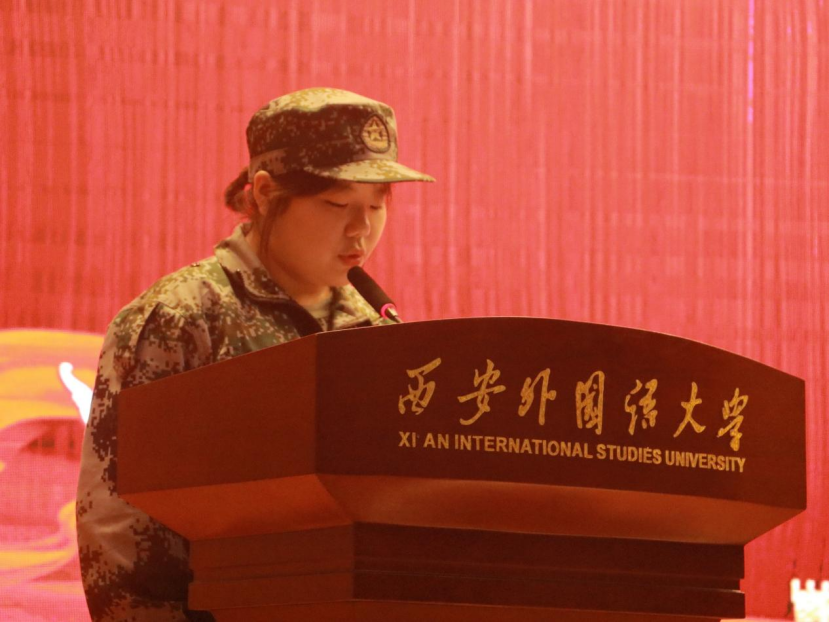 教师、八连指导员赵钱森从军训期间学生出勤、精神风貌、纪律作风等方面进行总结。赵老师指出,军训是大学期间培养毅力、磨炼意志、锤炼作风的重要方式,不仅有助于同学们提升个人素质,更能增强团队精神、强化纪律意识。本次军训期间,同学们的整体精神风貌有了很大改善,团队意识和合作意识得到了很大提高。随后,学生代表段夕聪、李晨和王璐思航分别进行发言。广袤山河,当用青春丈量;衣着迷彩,当以百炼成钢。他们真诚地分享了自己在军训期间的感受和对军训生活的留恋与不舍,并对学院的支持,连长和指导员的付出表示诚挚的感谢。