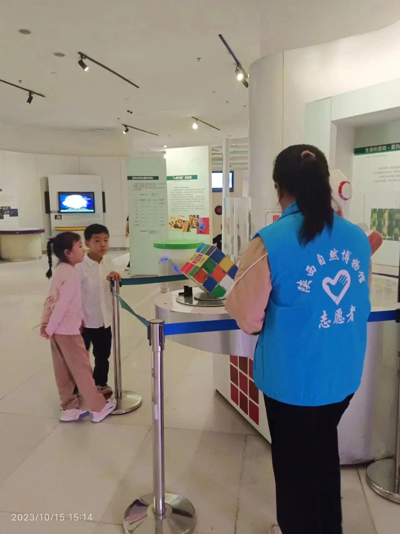 经过中午的略作休整,志愿者们再次回到自己的岗位,继续维持场馆内的秩序,为游客提供温暖的帮助,参与展览引导,蓝马甲们就是是陕西自然博物馆中靓丽的一道风景线。在工作过程中,志愿者们也同样感受到了自然遗产的魅力,加深了对自然文化的认识,得到了自我能力的提升,收获了满满的成就感。