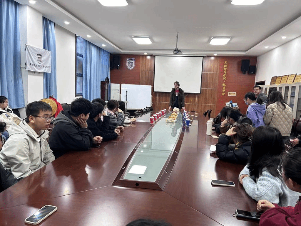为进一步提升学员英语口语水平,感受全英授课过程,11月17日下午军转干部进高校专项培训班邀请外教Robin与学员及学生进行交流教学。