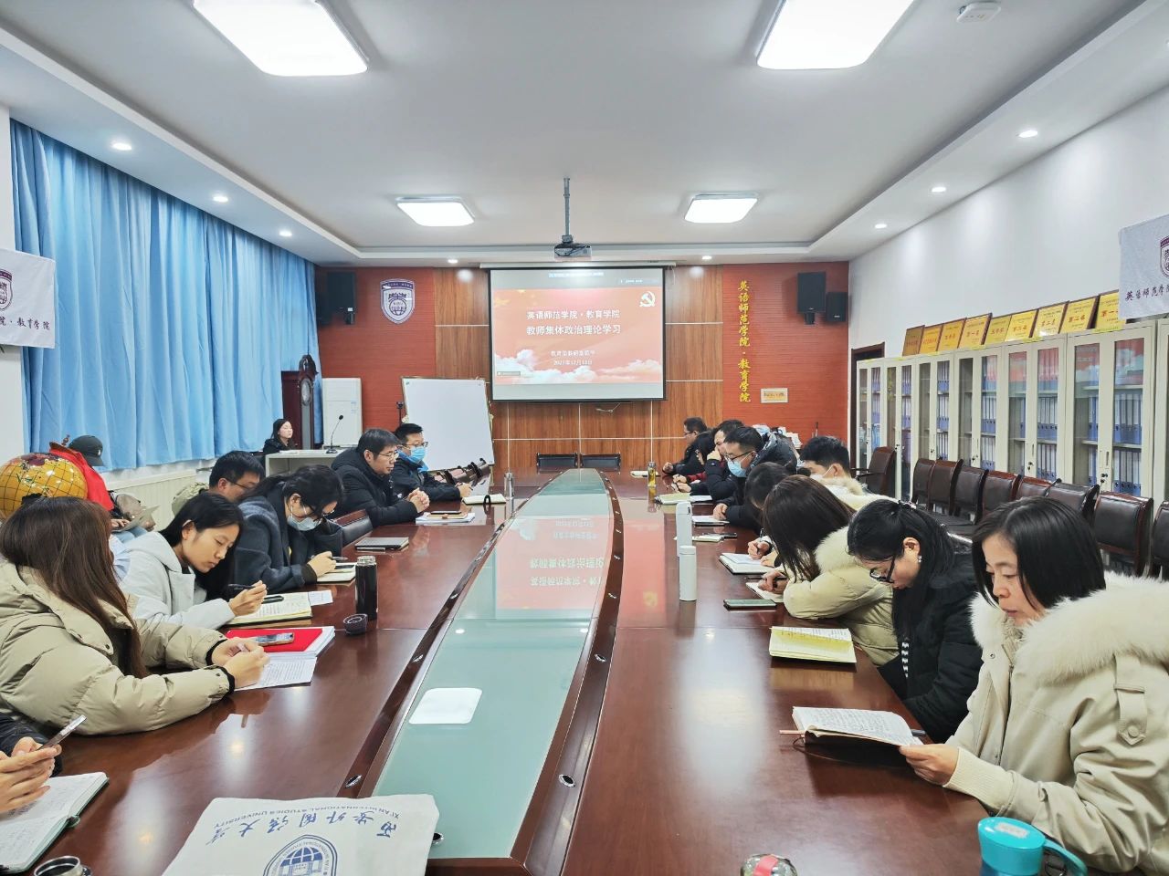 以线上线下相结合的方式召开了教师集体政治理论学习会,学院领导班子成员、教育学教研室全体教师、各科室成员和辅导员共同参加,集体学习由教育学教研室主任任凤芹老师主持。