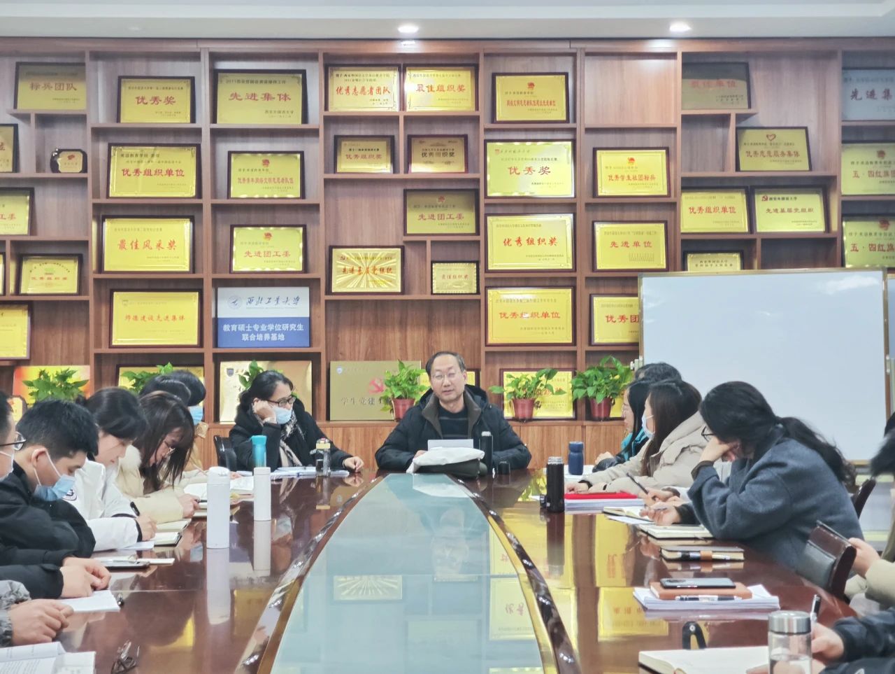 会议最后,学院党委书记姚玮总结讲话并强调:一是要持续推进学院“党建+业务”的工作模式,教研室各位老师既要加强对前沿思想政治理论学习,也要把理论学习中的感悟与自身工作实际相结合;二是要坚持学习贯彻党中央新思想新精神,希望各位老师通过持续深化学习,精确找准理论指导方向,从而启发理论学习,以加强对学生的教育引导。