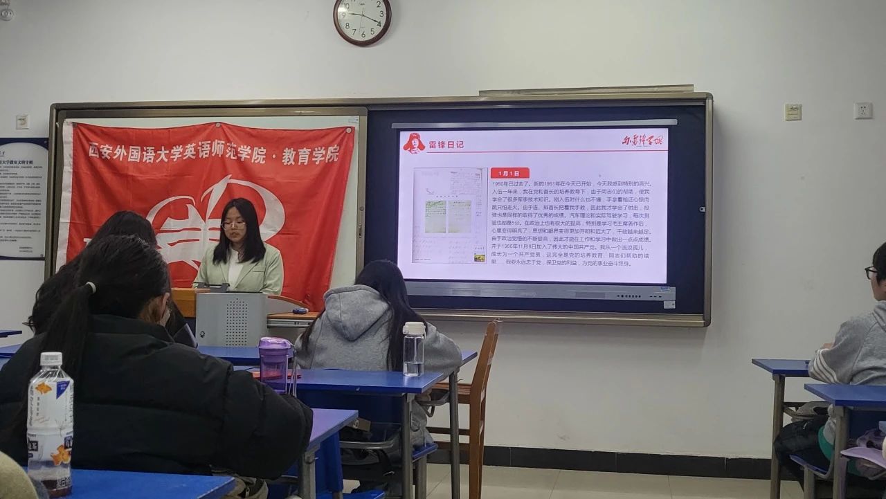 群与群之相际,代与代之相续。党这艘历经百年风雨的巨轮上钉满了伟大民族精神铸成的牢固螺丝钉,雷锋精神这颗螺丝钉在时间检验、岁月传承中越来越锃亮闪耀。为弘扬雷锋精神,凝聚青春力量,激励团员青年积极进取、发奋学习,紧跟时代步伐,永不懈怠,英才师教党团员社会实践服务队于3月26日晚在JD112教室开展了“弘扬雷锋精神,让青春在奉献中绽放”的主题团日活动。