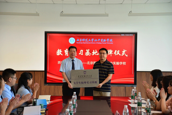 副院长王嘉铭与北京师范大学汉中实验学校副校长廖双水签订共建教育实践基地协议,并举行授牌仪式。