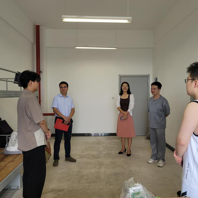副院长王嘉铭教授和樊桂芳副教授与西安市高新区第九初级中学执行校长寇江南和主任杨一鸣深入学生宿舍,关心了解实习生的生活和学习情况。领导们亲切询问实习生们的日常安排、未来学习以及实习安排等情况,鼓励他们在实践中不断成长,提升自身专业素养。