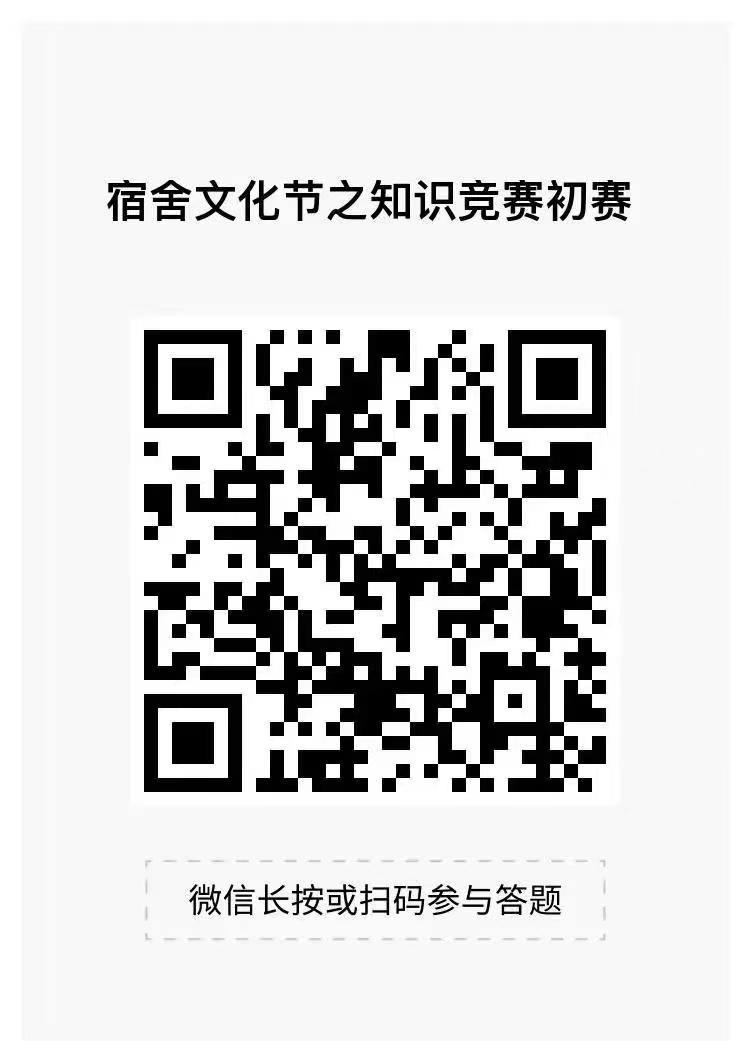 承办。比赛将以小程序答题形式进行(二维码见文末),此外参赛者需要加入宿管会建立的比赛群中(群二维码见文末),以便通知相关事宜。题目设置:根据校宿管会提供的题库,采取随机抽题模式,共六个模块,每个模块随机抽取5道题,共30道题,最后学院统计前三名进入决赛。