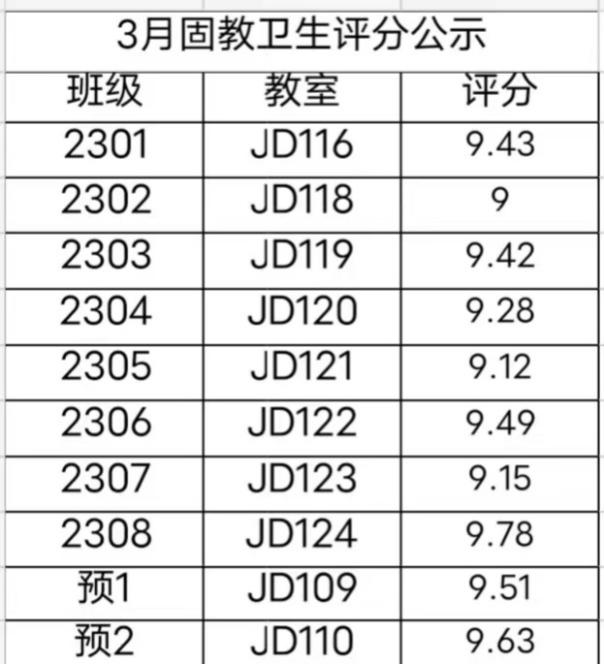 多数教室环境干净整洁,桌椅摆放整齐,墙壁不存在涂改现象,但个别教室存在垃圾未及时倾倒、讲台桌摆放杂乱等问题,希望同学们能继续加油,定期打扫,共同打造干净整洁的学习环境!