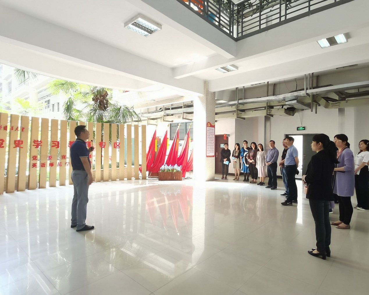 晴日暖风生麦气,绿阴幽草胜花时。在全校上下深入开展党史学习教育之际,2021年5月12日下午,英语师范学院党委教工第一党支部依托我校党史学习教育专区,举行了支部党员大会暨主题党日活动,王启龙副校长(主持行政工作)以普通党员身份参加了支部活动。