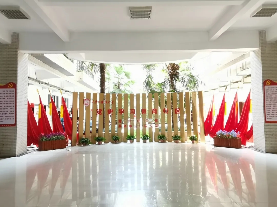 适逢中国共产党成立100周年,学校党委宣传部与九州娱乐 党委在教学楼E区一层联合设立了党史学习教育专区。该专区的设立一是便于举办各类党史学习教育活动;二是为了促进主题团日、党日活动的开展;三则是为了充分凸显专业优势,成立党史双语讲解队,鼓励学生用世界语言讲好中国故事。