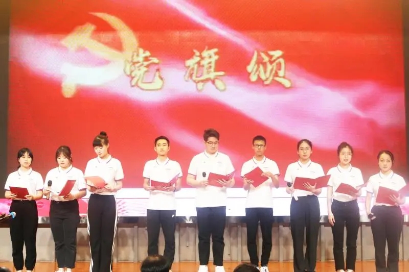 紧张的第三比赛环节“身临其境”结束后,英语师范学院为我们带来了朗诵节目《党旗颂》,英师学子慷慨激昂、热血满腔,歌颂着伟大的党旗。正如诗中所言,让我们携手担当未来责任,一起扛起民族脊梁,共同谱写中国最美华章。