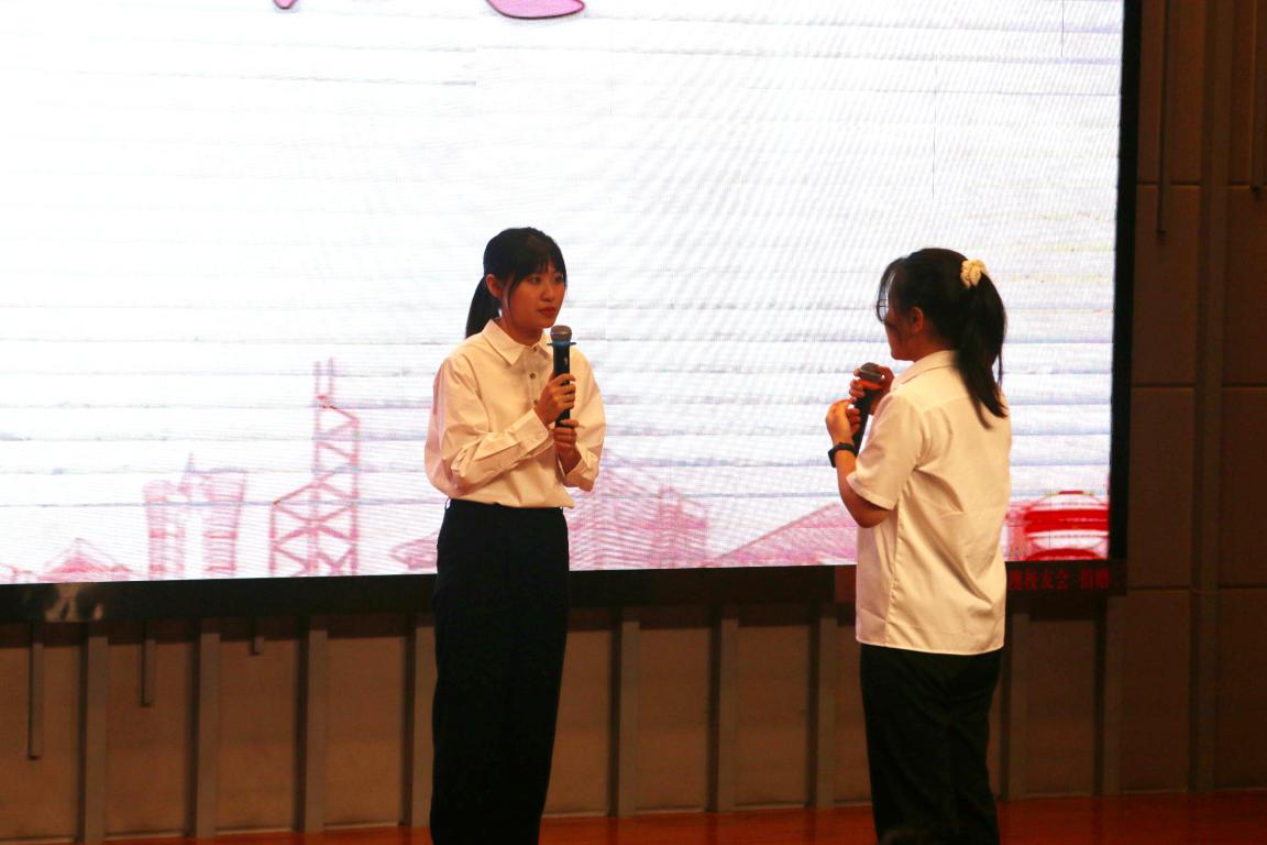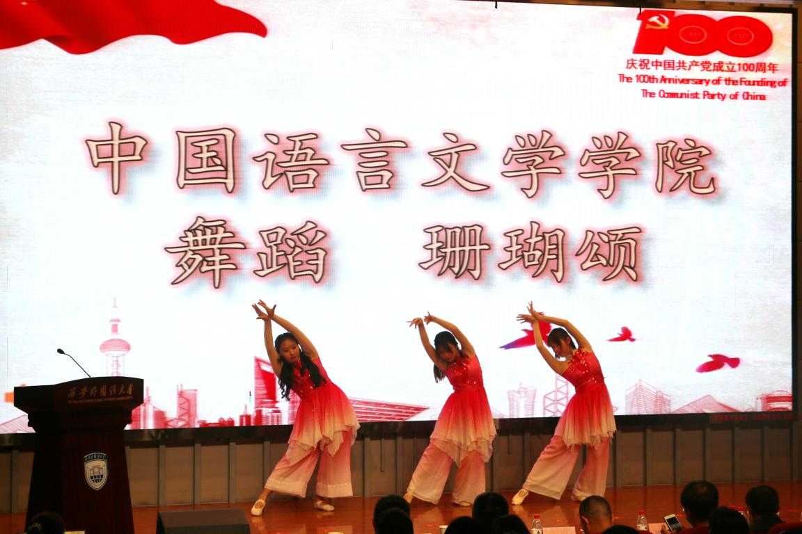 “你说我猜”环节结束后,中国语言文学学院中场舞蹈节目《珊瑚颂》用舞蹈的形式展现了红珊瑚形态俏丽如“一树红花”,光彩炙热似“一团火焰”的姿态,赞美了渔家女珊妹不怕风吹雨打、云遮雾盖的刚毅品格。优美的舞姿迎来现场师生的一致赞许。