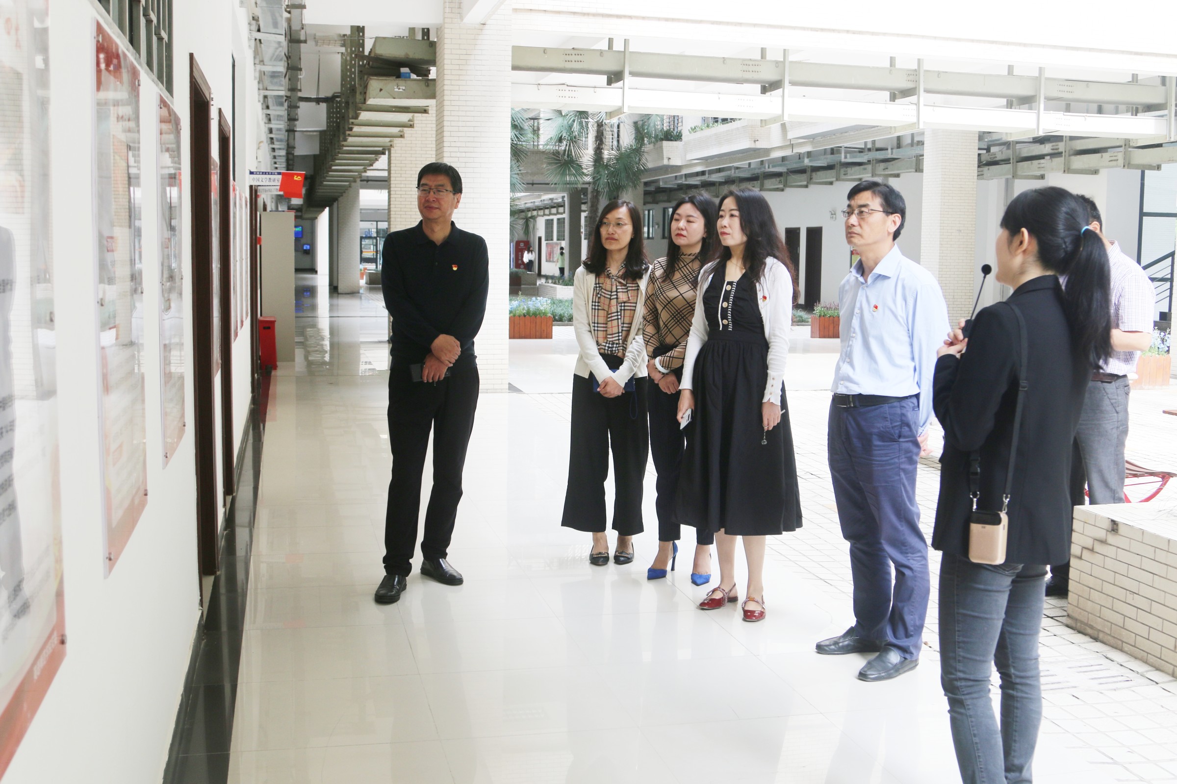 学院党委书记姚玮陪同学习并向来访者详细介绍了党史学习教育专区各板块的功能与作用。