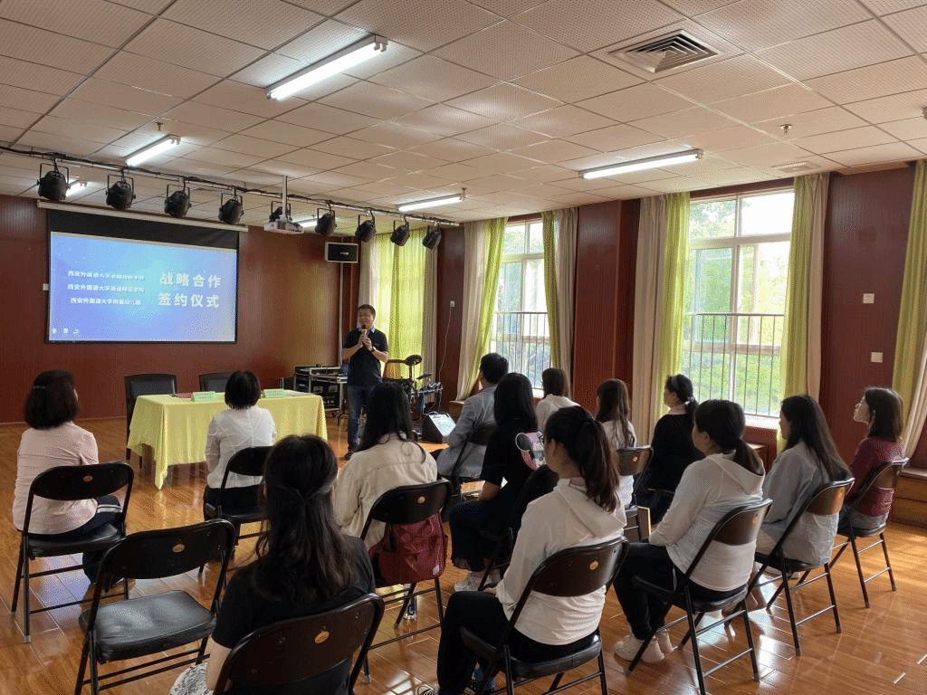 签约仪式上,校园双方进行了友好会谈。江曼园长对西安外国语大学附属幼儿园的办园理念、办园特色以及园内外环境等方面做了简要介绍。她提到,西安外国语大学附属幼儿园立足教育改革,建构了以多种理念、多种模式、多种途径、多种方法的课程框架,形成了以多种智能、多元文化相互融合的园本课程。同时,也表达了对本次合作美好的祝愿。