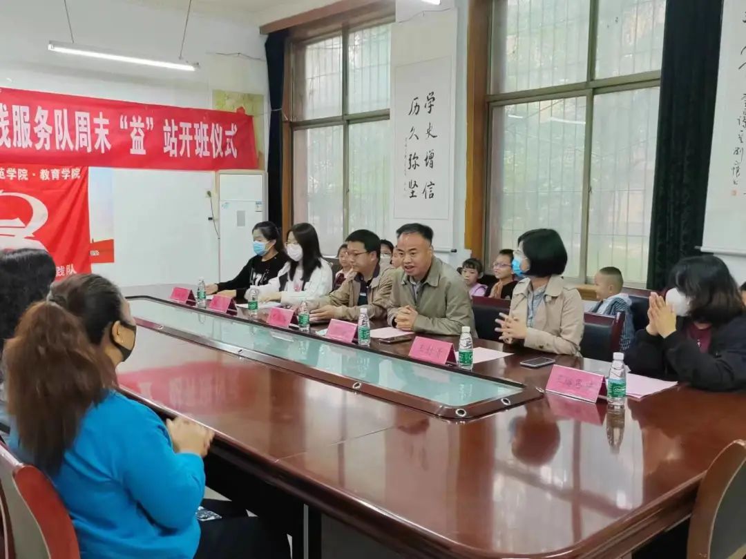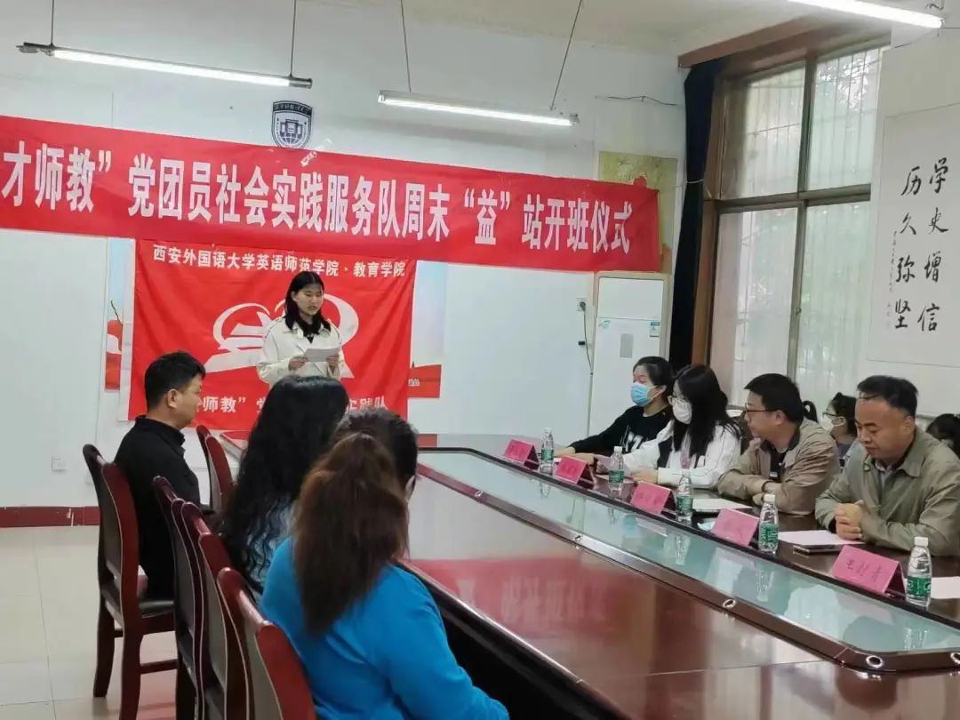 2023年6月3日,周末“益”站开班仪式在西外雁塔校区行政楼会议室顺利举行,离退休职工工作处党总支书记唐斌、英语师范学院·九州娱乐官网