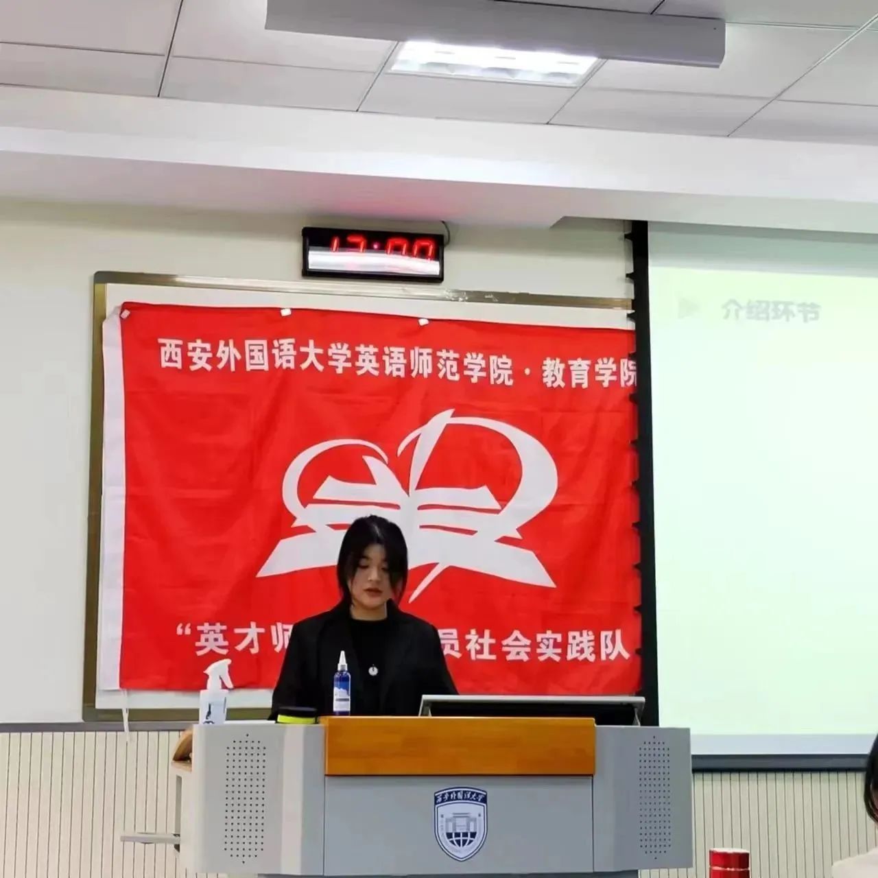 团支书于蓝翔为大家做了自我介绍,介绍社团工作周末“益”站、少数民族帮扶班、“石榴花开,同心筑梦”多语种诵读、“益童成长”及三人行等志愿公益活动,并分享了她在英才师教中收获的知识,学习的技巧以及积累的经验,希望每位同学能够在社团活动中收获新的技能,并在各项活动中丰富实践经验。