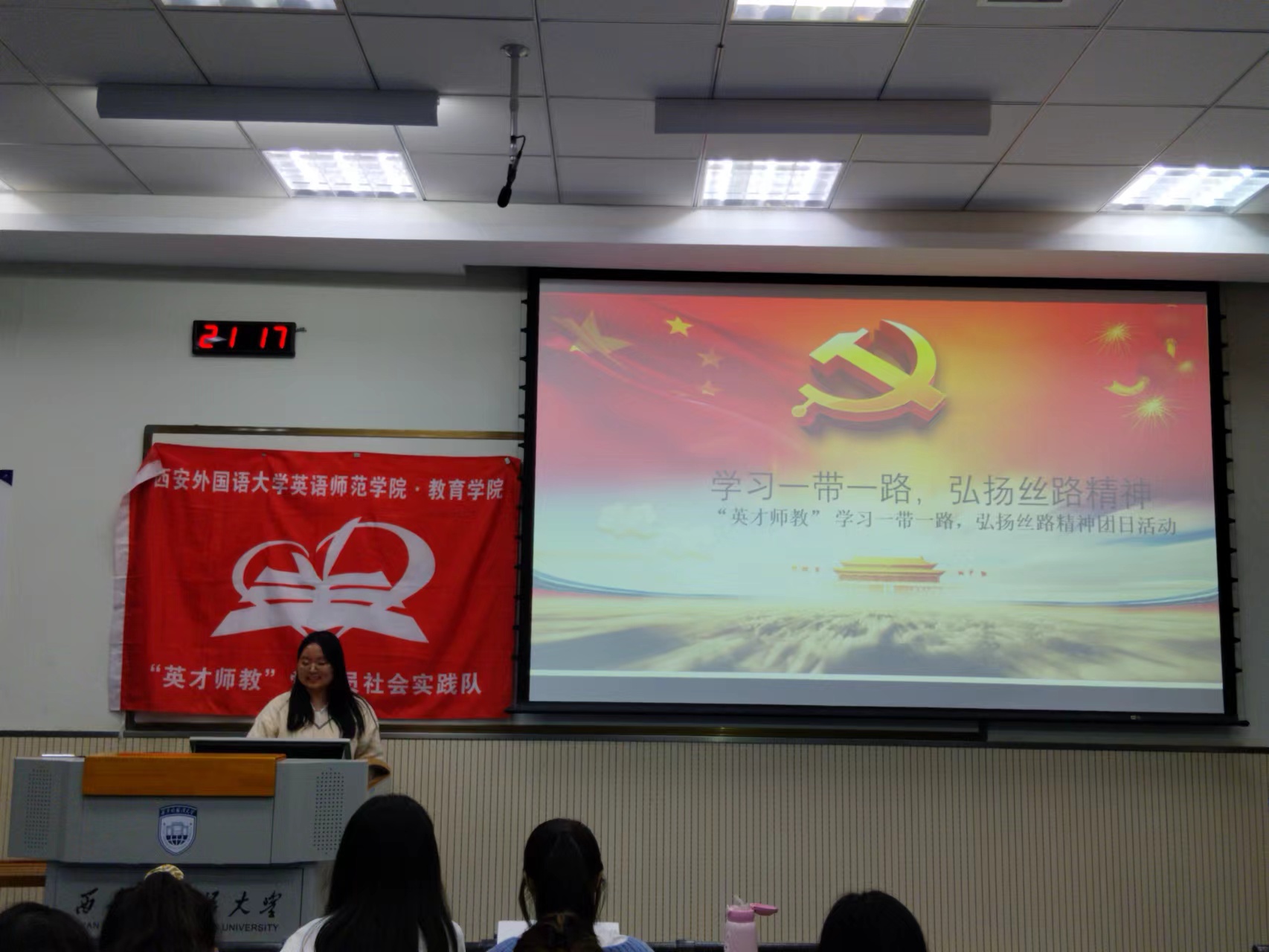 “国之交在于民相亲,民相亲在于心相通。” “一带一路”倡议的提出,不仅促进了沿线各国社会经济发展,也传递了中国温度和中国声音,彰显了大国责任与担当。英才师教党团员社会实践服务队于10月31日晚在JA110教室开展了“学习一带一路,弘扬丝路精神”主题团日活动。如今,世界之变、时代之变、历史之变正在以前所未有的形式展开,中华儿女要有纵乱云飞渡亦不改从容的定力,共同守望“一带一路”的美好愿景,开创和平、发展、合作、共赢的美好未来。