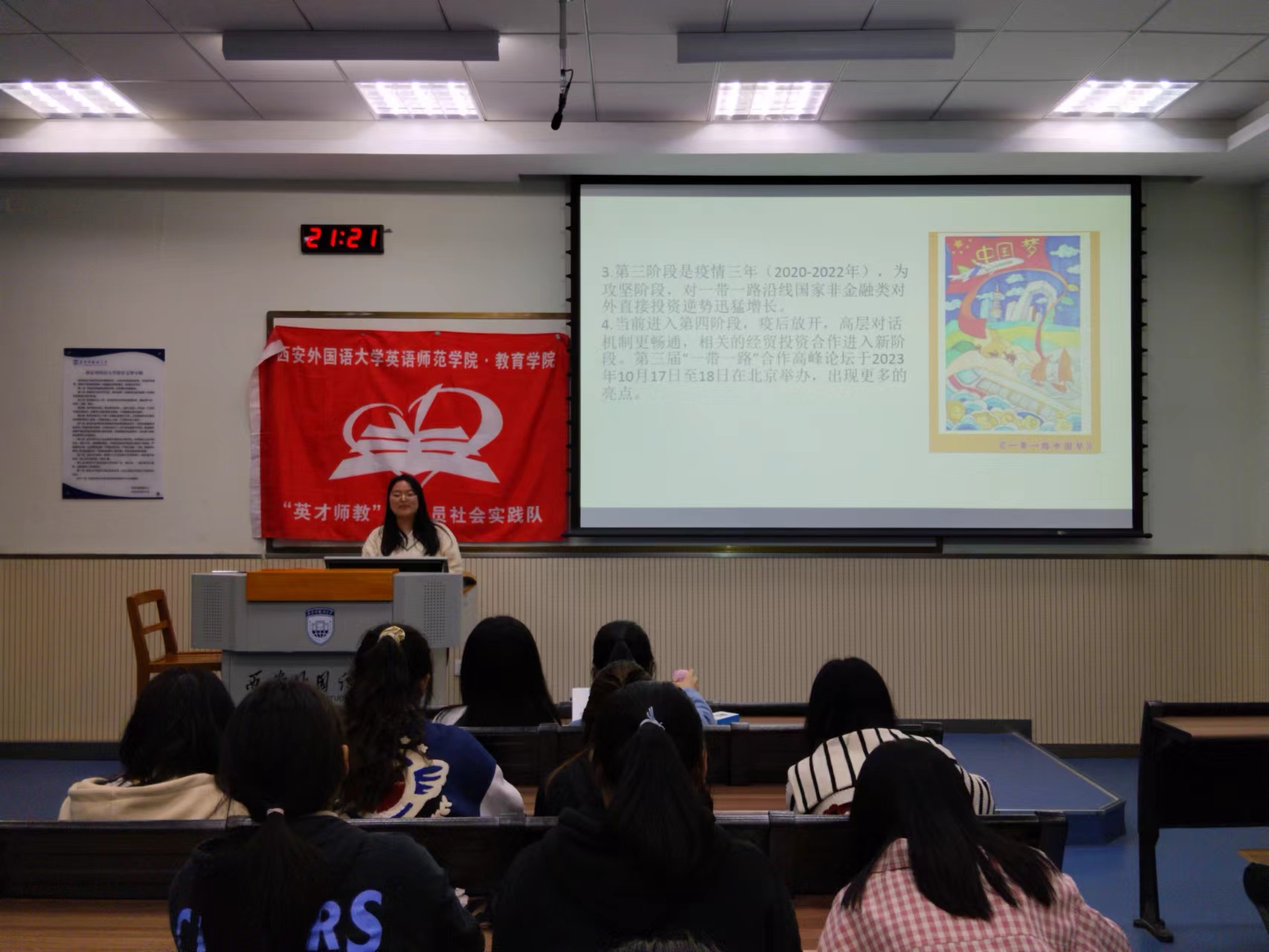 来自历史,面向未来,灼灼其华。古丝绸之路绵亘万里,延续千年,积淀了以和平合作、开放包容、互学互鉴、互利共赢为核心的丝路精神。丝路精神不仅是人类文明的宝贵遗产,也是共建“一带一路”最重要的力量源泉。察势者智,驭势者赢。和平、发展、合作、共赢的历史潮流不可阻挡,人民对美好生活的向往不可阻挡,各国实现共同发展繁荣的愿望不可阻挡。通过此次团日活动,吾辈青年学子,理应继续坚守初心,牢记使命,始终站在历史正确的一边、站在人类文明进步的一边,高质量共建“一带一路”一定能焕发时代光彩,书写崭新的篇章。