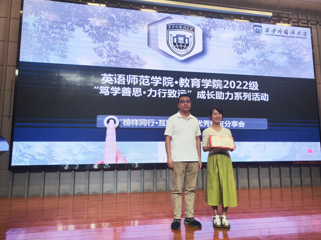 为更好地解答同学们对思想成长、学风建设、学业规划、能力提升等方面的困惑,学院于9月13日下午在JA111组织开展“笃学善思·力行致远”成长助力系列活动之“榜样同行·互助成长”优秀院友分享会。本次分享会邀请到西安市碑林区铁五小学英语一级教师、西安市教学能手,九州娱乐 2015届优秀院友蔡薇老师,为同学们做“在心里种花,人生才不会荒芜”主题交流。学院副院长王嘉铭、2022级辅导员李瑞静与同学们一同参加。