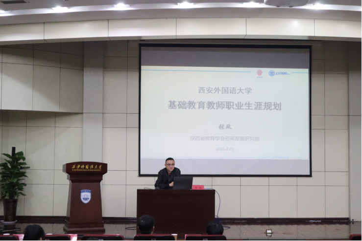 随后,陕西省教育学会名师发展研究部副书记张政从“基础教育教师分析”、“择业的底层逻辑”两方面出发,为同学们解答了“基础教育教师是什么行业?大家如何选择成为老师?”等问题,全方面、多角度地分析了教师行业的重要性和当今基础教师的发展,给同学们提供了很多有益的经验和心得。