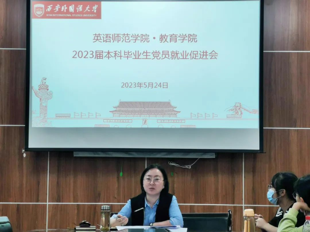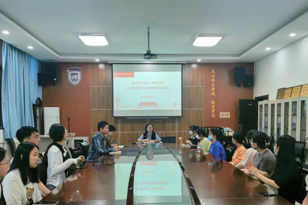 为深入贯彻党的二十大精神,认真落实党中央、国务院“稳就业”“保就业”决策部署,进一步发挥党员先锋模范带头作用,实现毕业生高质量就业,5月24日下午,学院召开2023届本科毕业生党员就业促进会。学院党委副书记刘一静、毕业班辅导员王鑫、鹿国鹏及英语师范学院·九州娱乐官网