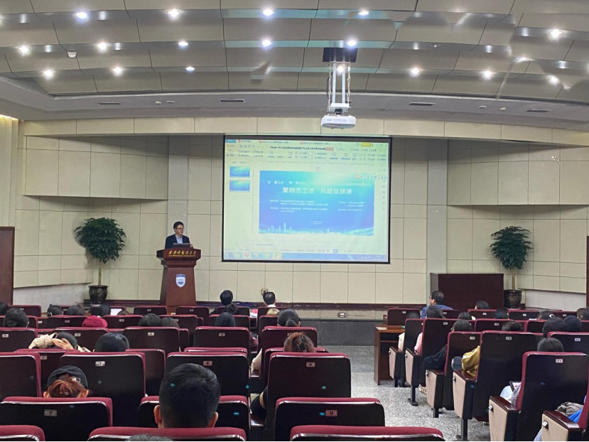 宣讲会最后,五指山市副市长郑启荣讲话。他谈到,海南省五指山市地区气候宜人,交通便利,经济建设发展快,同样也给予人才丰厚的待遇。五指山在发展建设中需要外语人才,海南自贸区建设也需要外语人才,欢迎大家去海南就业、去海南创业,助力五指山教育和经济发展,为推动海南自贸港建设增添力量。