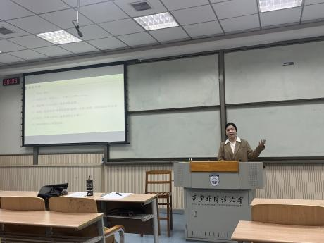 第二位分享的是韩鑫同学,她围绕学科竞赛和求职经验两方面进行了分享和交流。关于学科竞赛,学姐鼓励同学们要积极参加与专业相关的竞赛,竞赛的准备过程和教师指导能够帮助自己深入反思和优化自己的教学设计,竞赛中需要展示自己的教学成果和理念,这一过程可以逐渐克服紧张情绪,提高自己的自信心和表达能力。竞赛中的优异成绩不仅是对教学能力的肯定,也是求职的重要依据。关于求职经验,主要是简历制作、自我介绍、教学设计等方面的经验,同时建议同学们要多参加招聘会,积累经验。