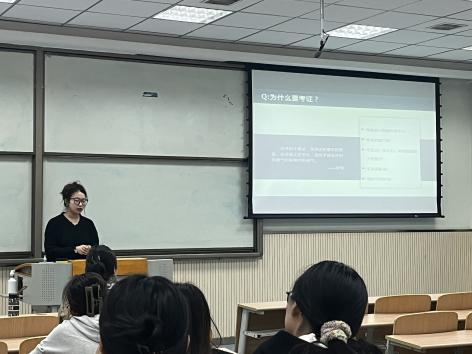 分享结束后,进入互动环节,同学们对于实习、论文写作、面试、考证等感到十分迷茫。针对这些问题,两位师姐结合自身经历建议同学们尽早规划,不要有压力,结合自己的实际需求考证,面试前全面准备,面试中勇敢、自信、不怯场。