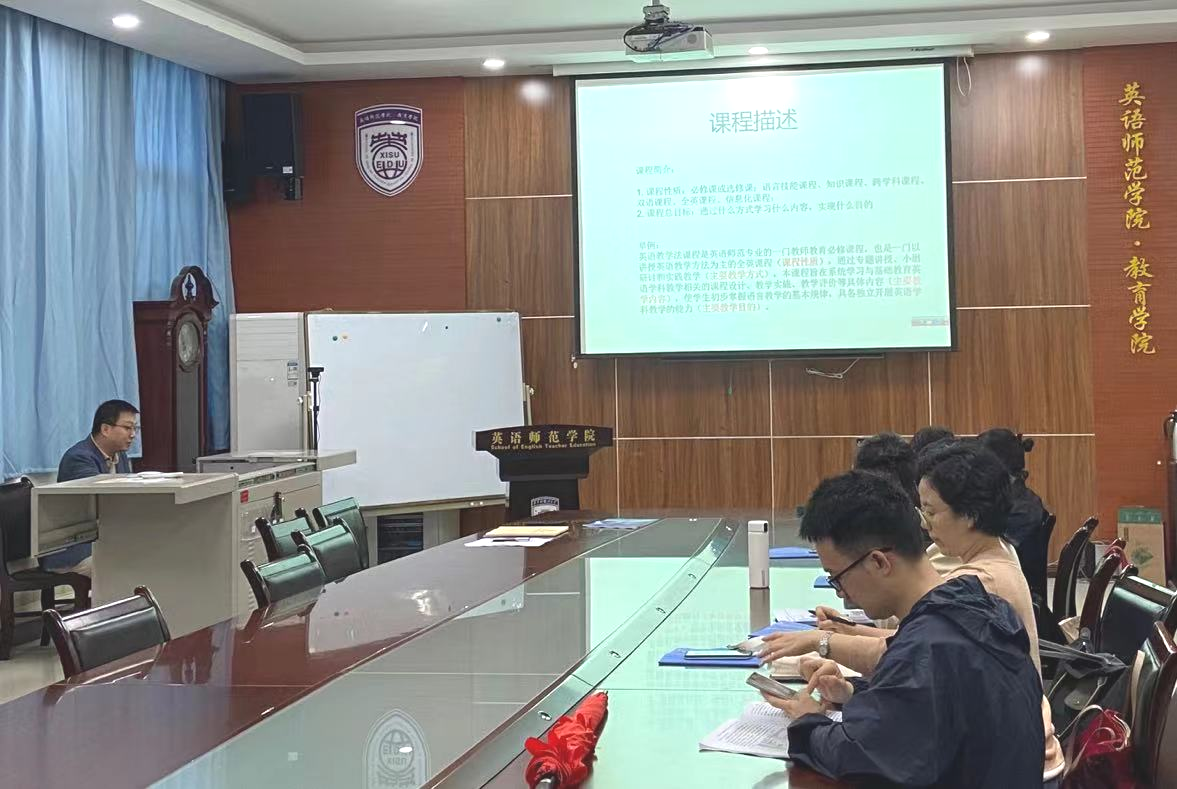 英语师范类专业认证工作,2023年9月20日下午两点,在H107会议室召开了英语师范类专业认证课程大纲修订讨论会议,院长王嘉铭、各教研室主任及部分教师共同出席会议,本次会议由副院长王嘉铭主持。