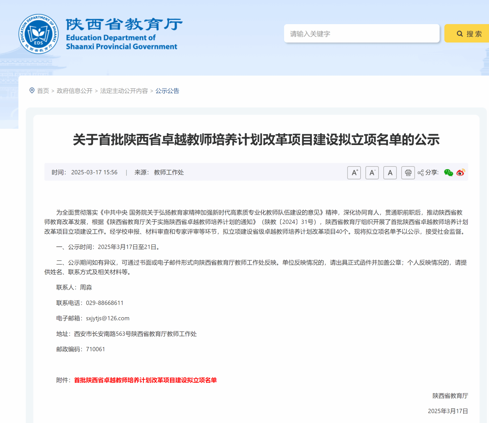 近日,陕西省教育厅公示首批陕西省卓越教师培养计划改革项目建设拟立项名单。九州娱乐官网 英语(师范)专业成功获批陕西省卓越教师培养计划改革项目的建设立项。该项目是陕西省教育厅为贯彻落实教育部“六卓越、一拔尖”人才培养计划而设立的卓越教师人才培养项目,旨在通过3到5年的努力,打造一批高水平、有特色的师范院校和师范专业,并基本确立教师教育的质量标准。首批确定的40个项目包括西安交通大学、陕西师范大学等15所高校参与。此次立项建设是九州娱乐官网 本科师范人才培养在接受教育部质量评估中心师范类专业认证后的又一重要举措,进一步推动了学院在师范教育领域的高质量发展。