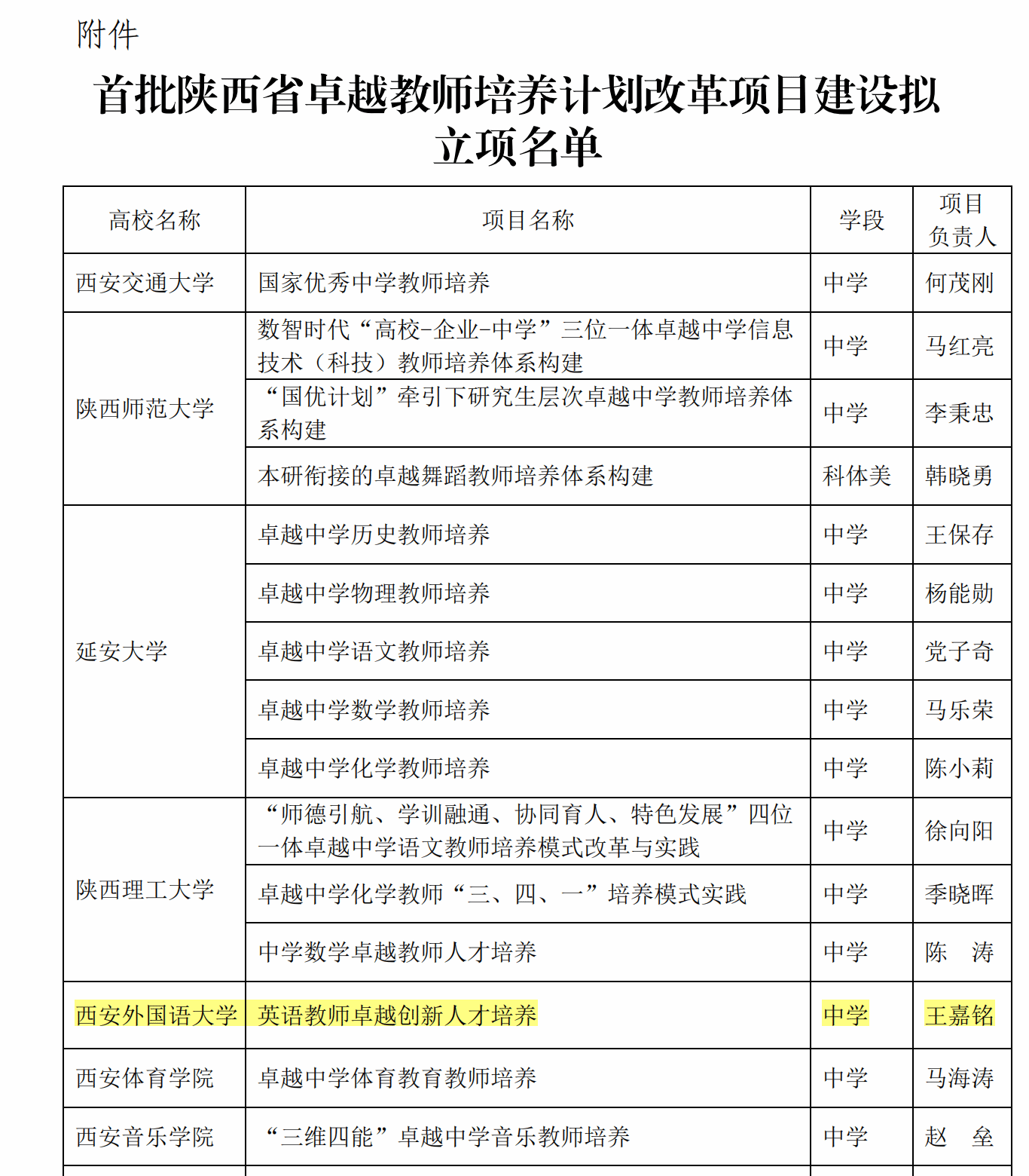 英语(师范)专业成功获批陕西省卓越教师培养计划改革项目