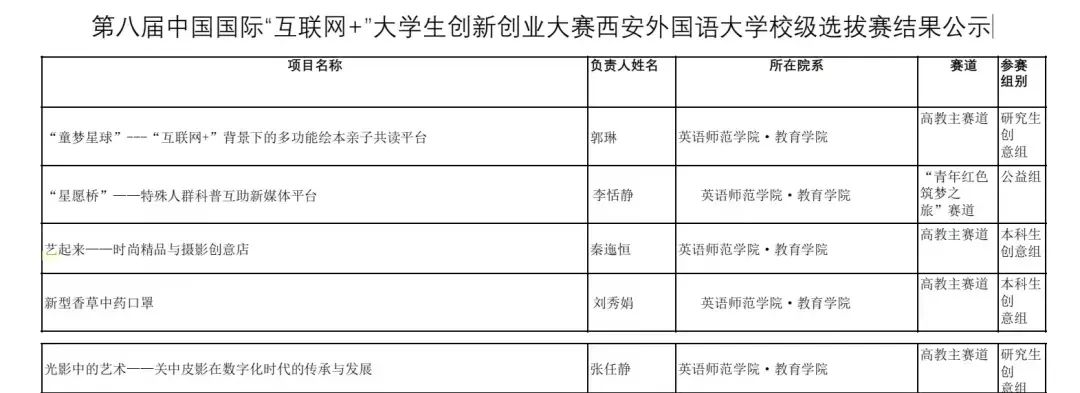 学生在2022年度大学生创新创业项目申报中,获批11项校级项目,5项省级项目。在第八届“互联网+”大学生创新创业大赛校级选拔赛中共荣获银奖4项,铜奖2项,优秀奖4项,以上成绩为历年来最好成绩。