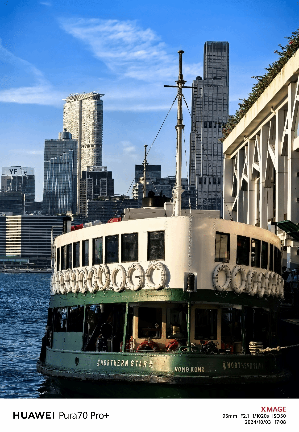 在蓝天映衬下,维多利亚港如一幅生动画卷,波光碎银,轻舟荡漾。岸边高楼林立,仿佛诉说着不息的繁华与梦想交织的故事。