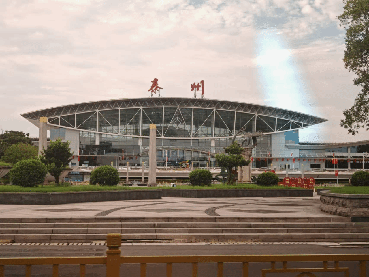 泰州火车站如凝固的诗,立于水乡。其独特造型似大鹏展翅,象征泰州对未来的憧憬。站在站前广场,望着“泰州”二字,令人感动。这里是泰州与世界的纽带,火车鸣笛是城市与外界的对话,车站内满是旅客的故事和泰州的古今风貌。