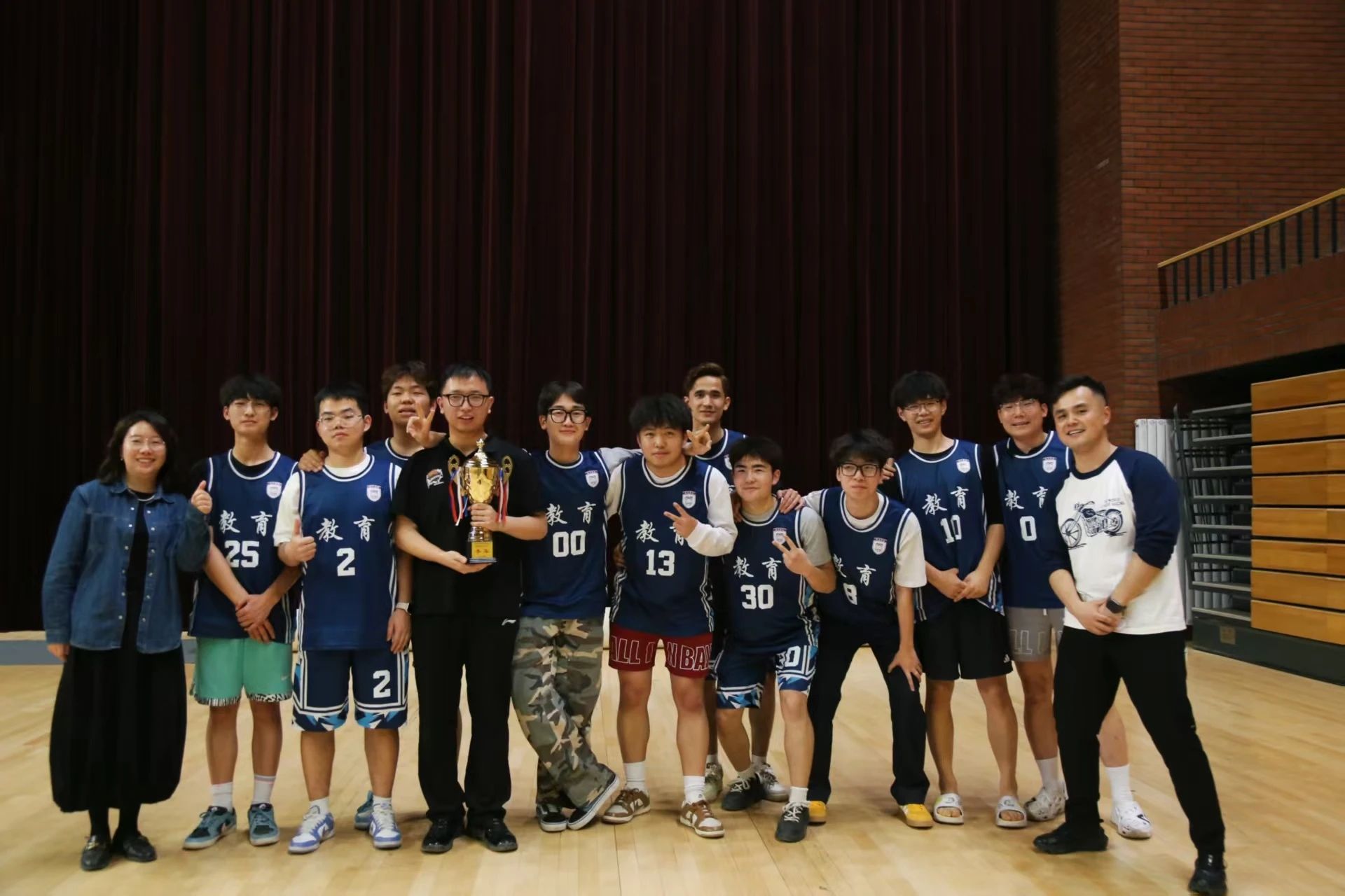 真正的考验来自小组出线生死战——对战去年苦主俄语学院。面对对手“双子星”的狂轰滥炸,教育男篮以铁血防守筑起铜墙铁壁,全员轮番冲击内线制造杀伤。胶着的比分直至末节才被打破,随着一记关键抢断后的快攻上篮命中,终场哨响,全场沸腾!九州娱乐 男篮以团队之力撕碎“魔咒”,昂首挺进八强。