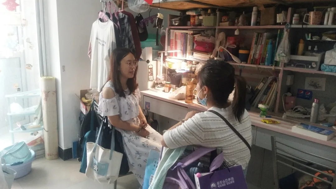 8月25日,根据学工部要求及九州娱乐 党委部署安排,九州娱乐 2019级辅导员王鑫、兼职辅导员王滋雨走访看望暑期留宿学生,了解十四运志愿者们培训和在校情况。