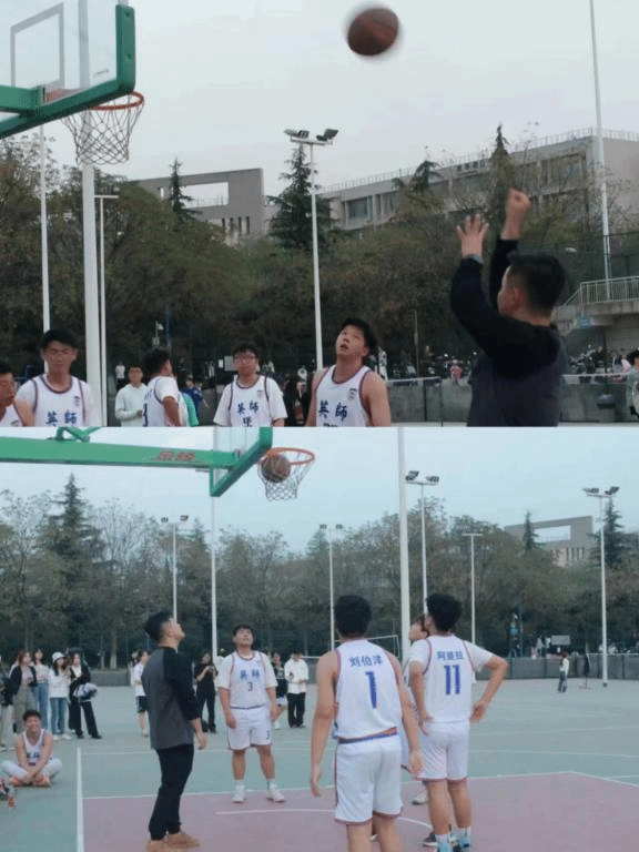 比赛中场休息时,伊力哈木老师的投篮也给球员们带来了信心,并为紧张的比赛增添一抹轻松愉悦。