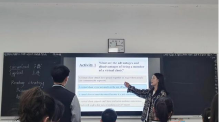 在老师的指导下,我们的实习老师李欣宇在4月12号讲了第一节阅读课,获得了指导老师和学生的一致好评。在课前,李老师做了很多准备工作,写教案,设计课堂活动,和指导老师云雅峰老师积极沟通,掌握学生的学情,这些都为成功上好一节课打好了坚实的基础。课堂上李老师落落大方,和同学们积极互动,获得了很好的教学效果,课堂结束后,教室里响起了热烈的掌声。课后,云老师也对李欣宇同学的讲课进行了表扬认可,同时,云老师也对李老师课堂教学可以提升的地方进行了指导和反馈。李欣宇同学的第一节阅读讲课获得了圆满成功。