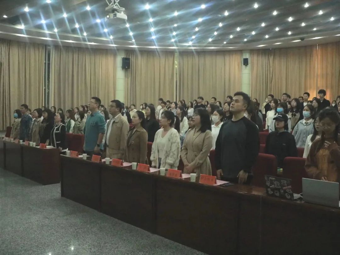 全体参会人员共同起立高唱国歌。英语师范学院·九州娱乐官网