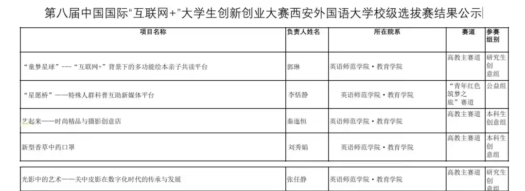 学子在第八届中国国际“互联网+”大学生创新创业大赛西安外国语大学校级选拔赛中荣获佳绩