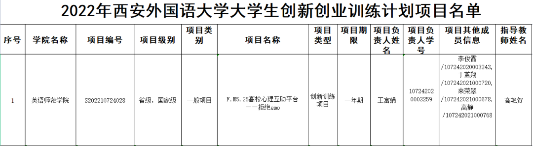 1个项目获批2022年国家级“大学生创新创业训练计划”项目立项