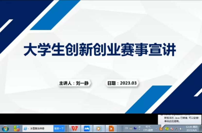 在H107会议室采取线上线下同步进行的方式,开展了大学生创新创业赛事宣讲会。本次宣讲会由学院党委副书记刘一静主讲,线上线下共计100余人参加,宣讲会由2021级辅导员王封青主持。