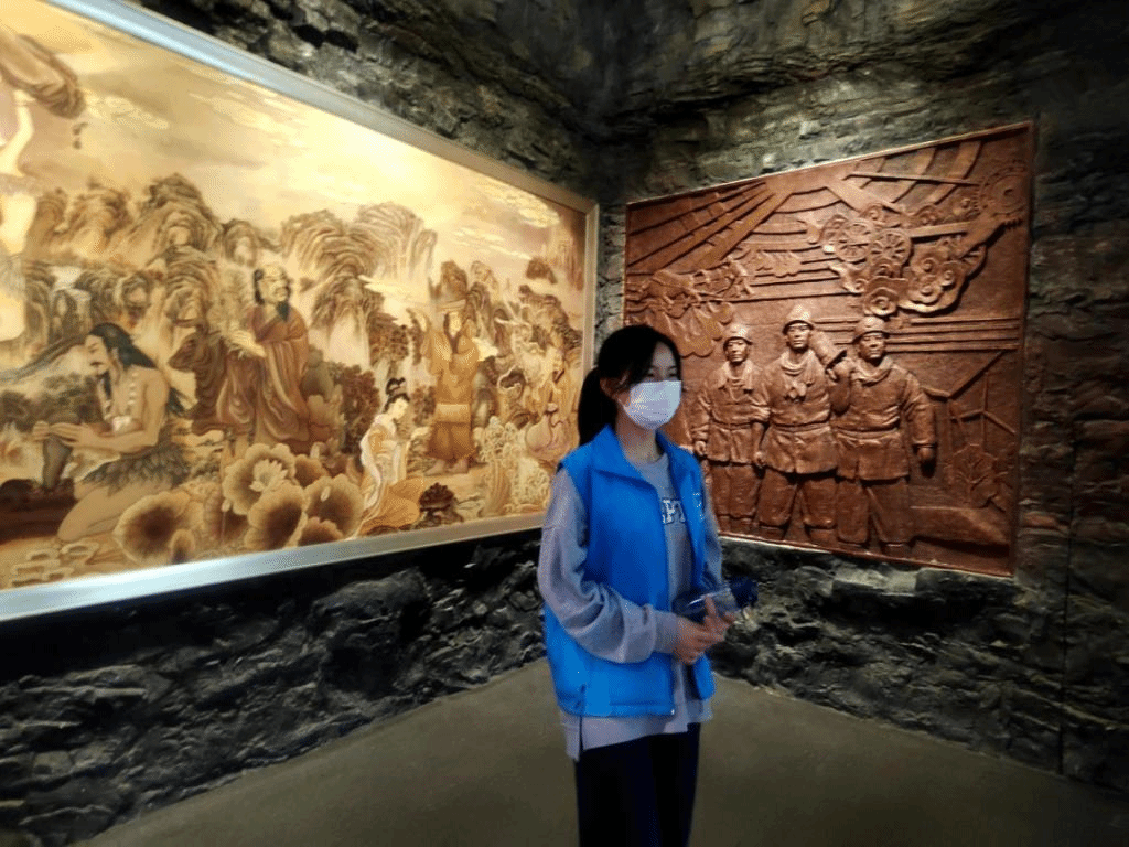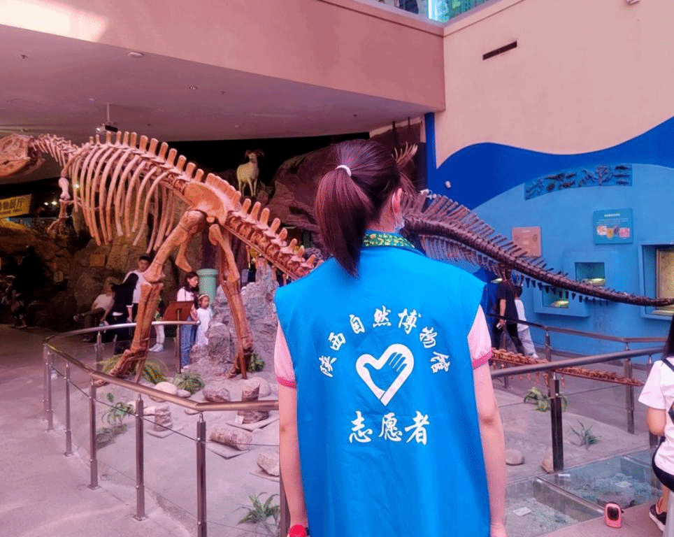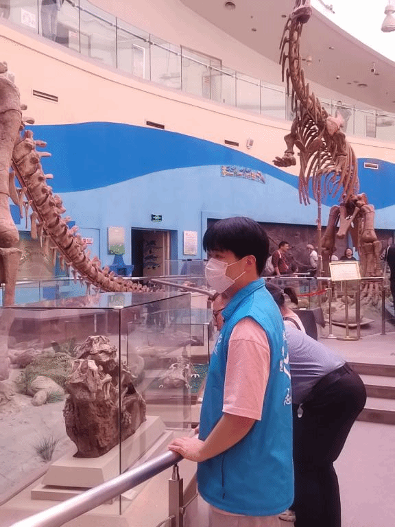 志愿者们于八点半到达陕西自然博物馆,在博物馆负责人的领导下,穿上蓝色马甲熟悉分组负责的场域,开展为期一天的志愿活动。志愿者们被划分成两组,分别负责贝林馆与自然馆。