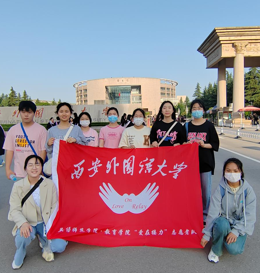 五月,温暖的春天已经渐渐离我们远去,雨水与晴日相伴而行,拉拽着气温逐渐升高。历经一周多淅淅沥沥的雨水,周六终于迎来万里无云的晴日,清晨的空气尚带着些凉意。“爱在接力”志愿者队十位志愿者在校门口准时集合,鲜红的队旗在志愿者的手中显得格外鲜艳。