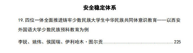 由少数民族预科班申报的“四位一体全面推进铸牢少数民族大学生中华民族共同体意识教育——以西安外国语大学少数民族预科教育为例”成功入选2023年度学校思想政治工作优秀案例,项目组成员:李锐、姚伟、侯国瑞、伊利哈木·图尔贡。
