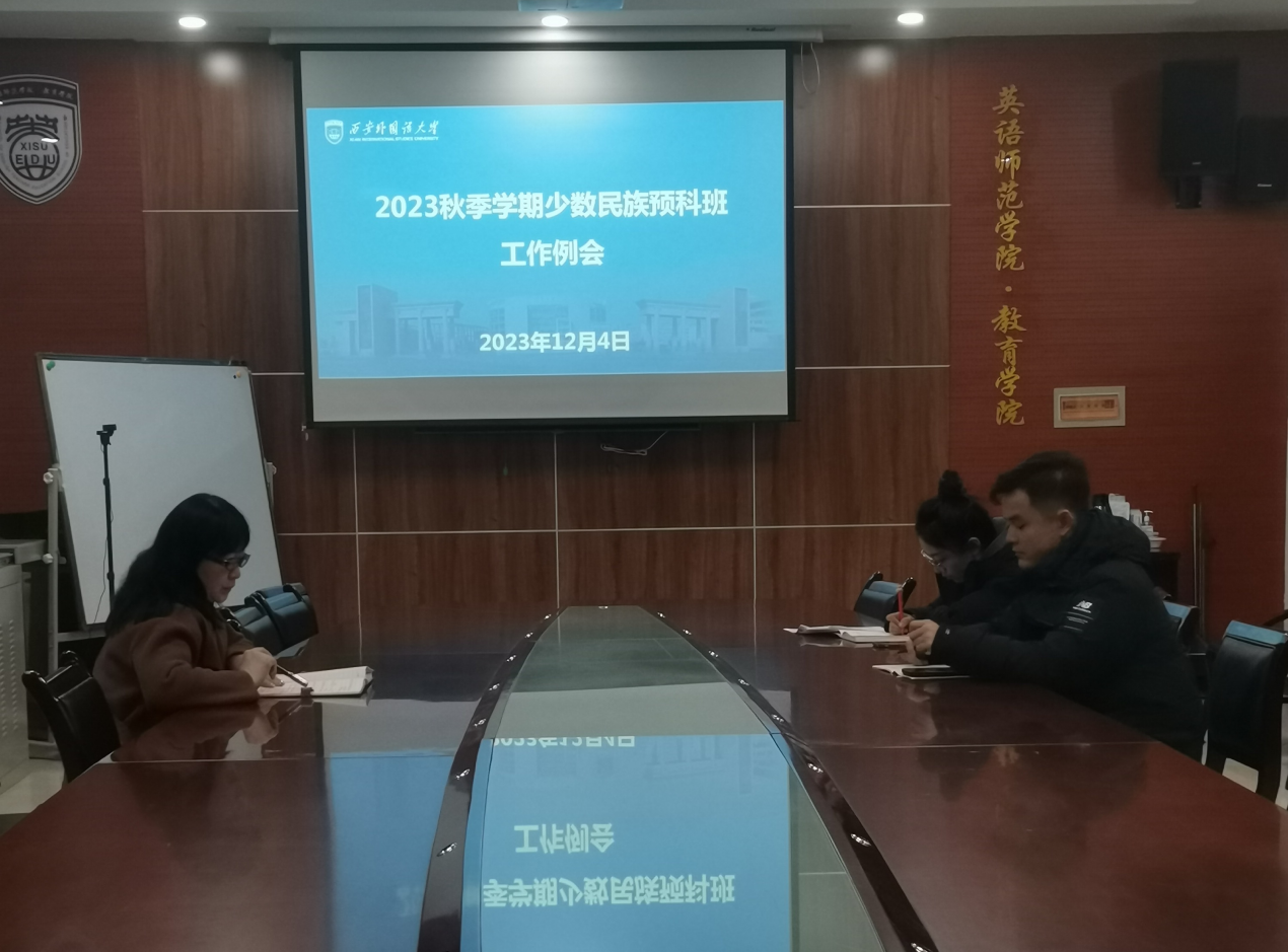 12月4日14:30在H107会议室召开2023年秋季学期少数民族预科班工作例会。学院副院长、少数民族预科工作负责人李锐及辅导员伊力哈木、教学秘书侯国瑞参加会议,会议由李锐主持。